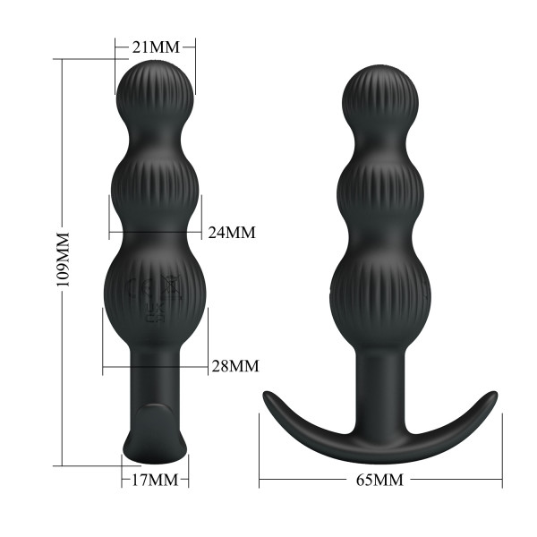 Форма девайса выполнена в виде 3 рельефных шариков с поэтапным увеличением диаметра, что обеспечивает крайне плавное введение. Надежный ограничитель лодочка идеально фиксирует девайс внутри и позволяет использовать для длительного ношения
