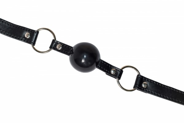 Выполнен кляп из ПВХ в виде шарика. Ремешок из экокожи регулируемый и фиксируется навесным металлическим замком!