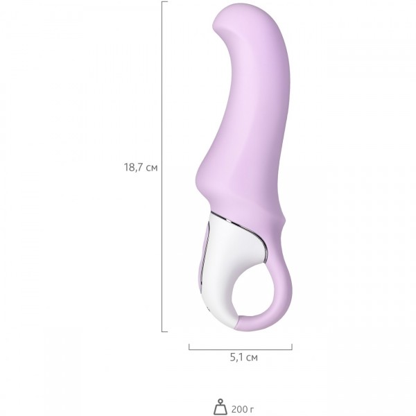 Выполнен вибратор из медицинского силикона в сиреневом цвете. Абсолютно гипоаллергенный! Не имеет швов, стыков, посторонних запахов. По тактильным ощущениям бархатистый, нежный